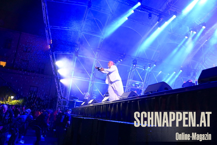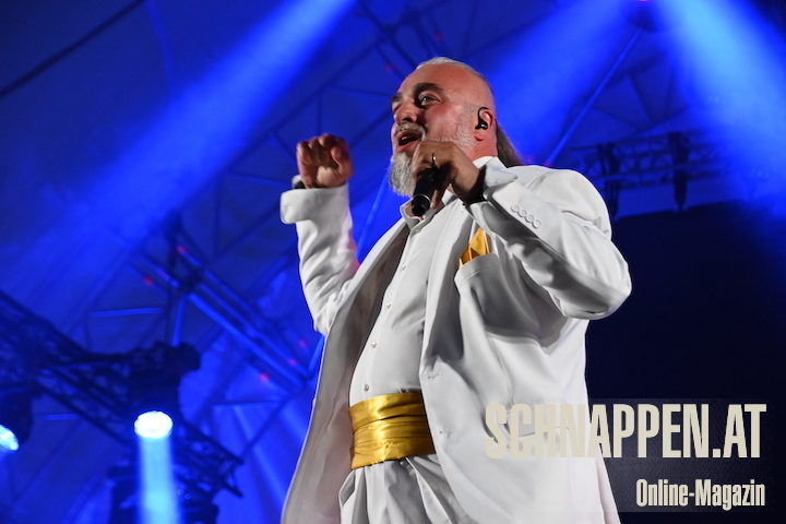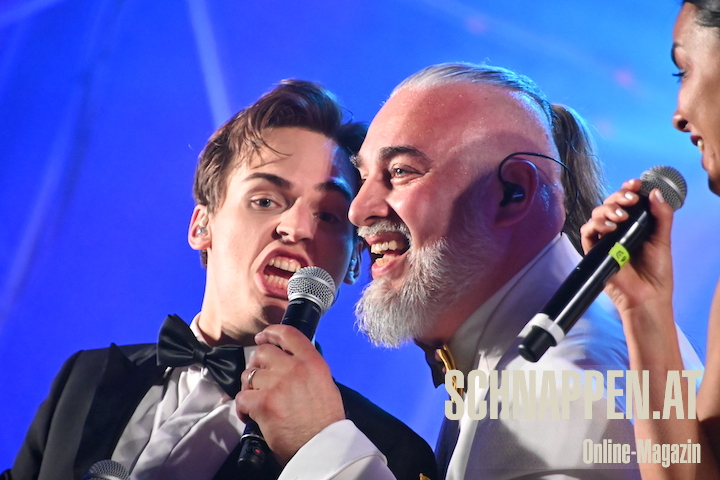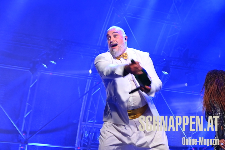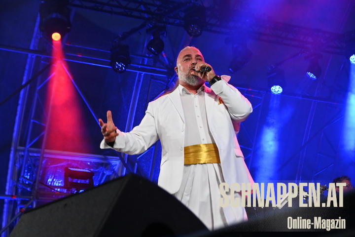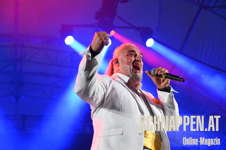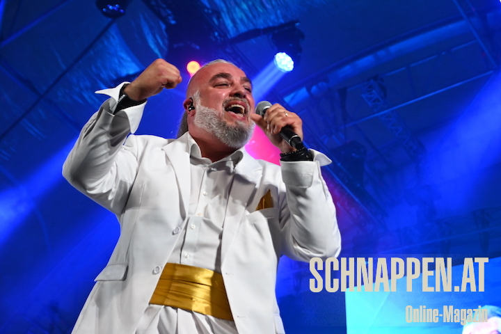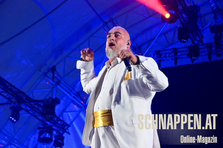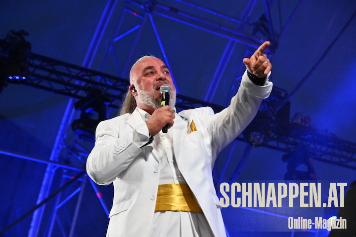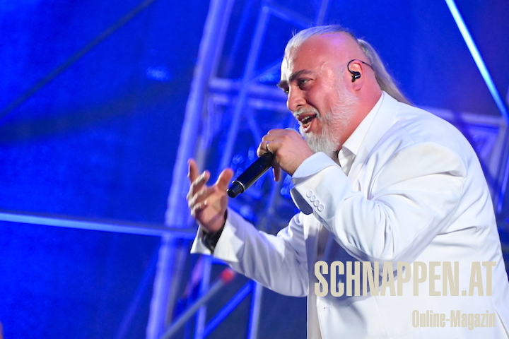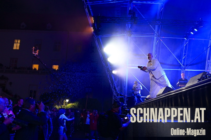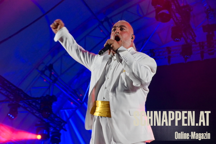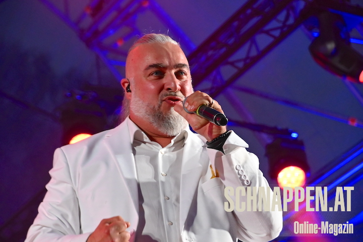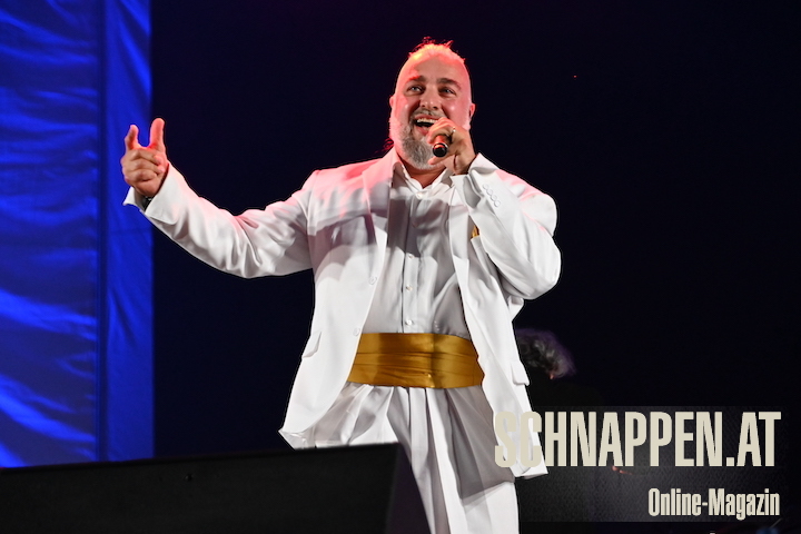 Vor etwa 12.000 Menschen, so schätzte der Veranstalter, die Stadtgemeinde Wiener Neustadt die Besucher-Zahl, brachte Georgij Makazaria mit seiner kraftvollen Stimme einige der großen Falco-Titeln dar, die Falco bei seinem legendären Auftritt im Jahr 1994 am Wiener Neustädter Domplatz vor 10.000 Menschen sang.