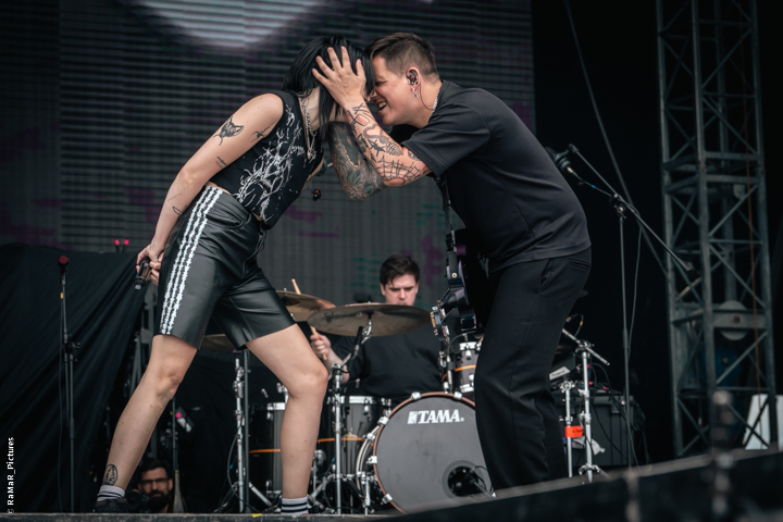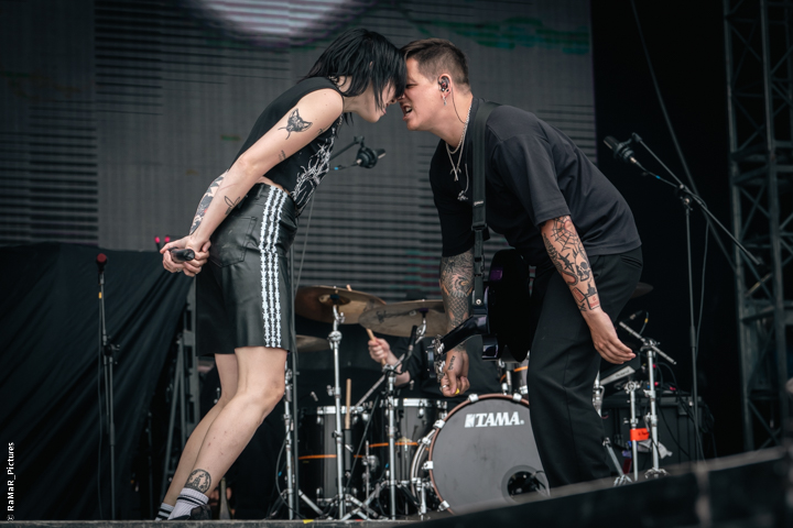Hot Milk, die englische Rockband aus Manchester gastierte beim Nova Rock Festival Mitte Juni 2024 auf den Pannonia Fields in Nickelsdorf im Burgenland (Österreich). Gegründet wurde die Rockband 2018 von den Sängern und Gitarristen Jim (James Shaw) und Han (Hannah Mae). Mit dem Bassisten Tom Paton und dem Schlagzeuger Harry Deller war der Auftritt auf der NovaRock-Bühne komplett.