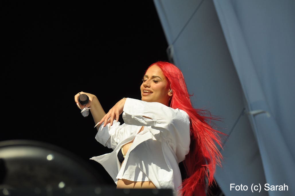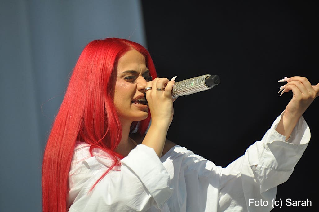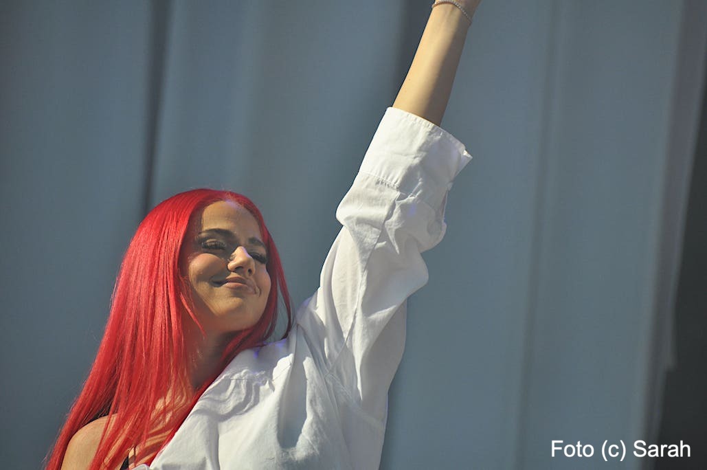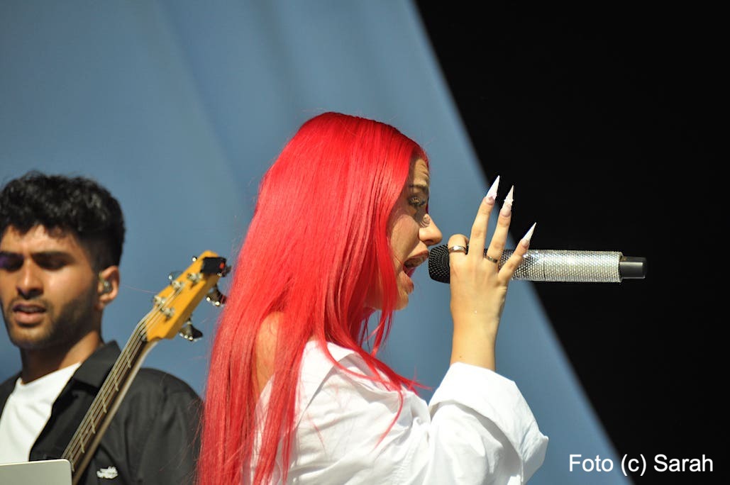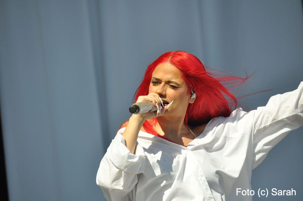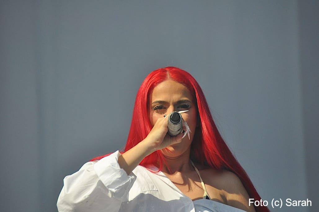 Die Brandenburgerin mit den knallroten Haaren und den extravaganten, spitzen Fingernägel war einer der großen Hingucker am hochsommerlichen Lido Sounds-Sonntag.