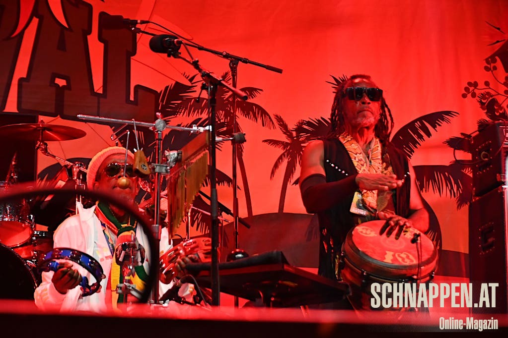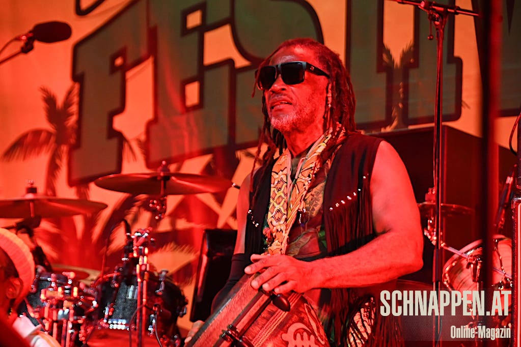 Auf der Festivalbühne in Wiesen sang Kumar Fyah mit seiner so positiven Ausstrahlung auch einige Songs gemeinsam mit der Band "Third World".