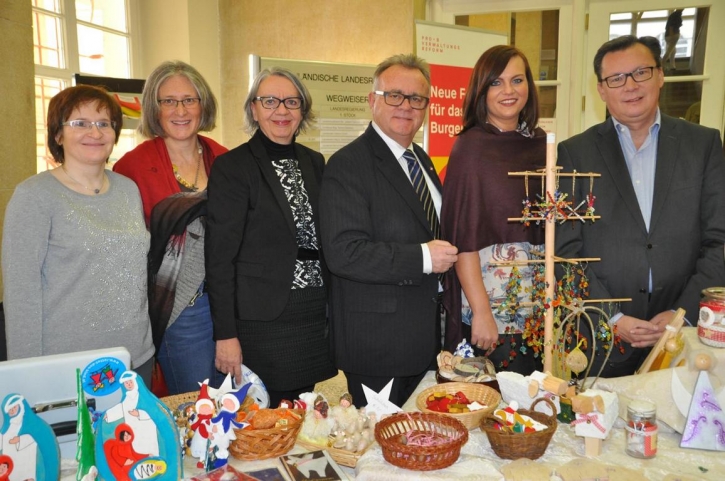 Jedes Jahr in der Vorweihnachtszeit stellen burgenländische Behindertenorganisationen, Förderwerkstätten, Tagesbetreuungseinrichtungen oder Arbeitsloseninitiativen an einem Tag im Foyer im Landhaus Eisenstadt im Burgenland (Österreich) Weihnachtsmarkt-Artikel zum Verkauf aus. 2016 bot das Caritas Wohnheim Wimpassing und die Förderwerkstätte Eisenstadt von "Rettet das Kind" die Basar-Produkte an. Mehr über