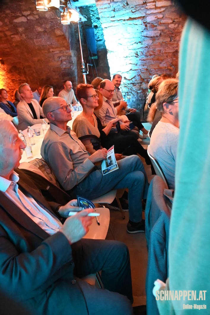 Im Gemeindekeller war kein freier Platz mehr zu sehen, als die Intendanten "Flo und Wisch" zur Eröffnung der Festspiele "Kabarett am See" und der Vergabe des burgenländischen Kabarettpreises Altbürgermeister und Ehrenbürger Ernst Schmid auf die Bühne holten.