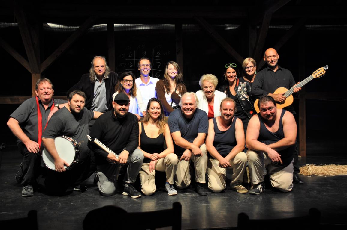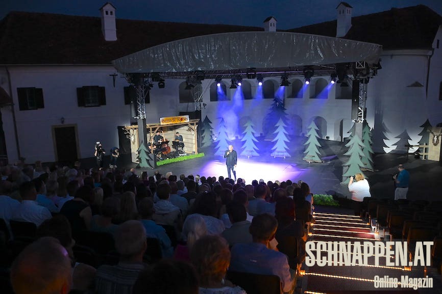 Nach der Begrüßung der Premierengäste am 29.8.2024 durch Standort- und Festivalleiter Benno Döller landeten die Darsteller des Uhuldertheaters und die Musiker Joe Pinkl, Georg Bushofer und Christian Steinkogler beim Publikum auf Schloss Tabor einen tollen Erfolg.