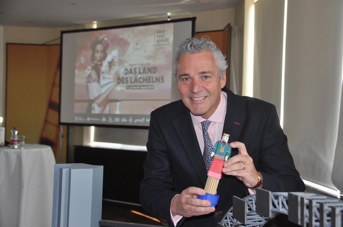 "Wir wollen das Publikum in jeder Hinsicht überraschen und unterhalten: Sei es mit großen Dimensionen und technischen Raffinessen in Bezug auf das Bühnenbild, traumhaften Kostümen, Musik auf höchstem Niveau oder mit einer hervorragenden Besetzung", erklärt Peter Edelmann, der künstlerische Leiter der Seefestspiele Mörbisch.