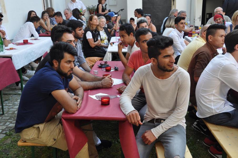 Im schönen Hof des VHS Gebäudes wurde dann bei schönen Wetter und Speis und Trank auf die vielen Menschen, die nun wieder berufliche Perspektiven haben, angestoßen.