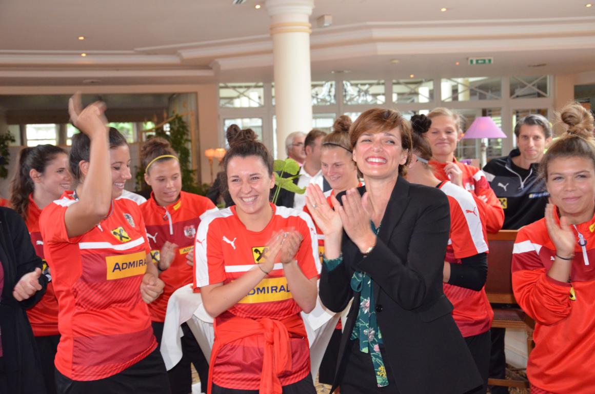 Den Fußballerinnen statteten auch Sportminister Hans Peter Doskozil (SPÖ) und Gesundheitsministerin Pamela Rendi-Wagner (SPÖ) einen Besuch ab. Dazu gab es auch kleine Presente und viel Anerkennung. Und vor allem festes Daumendrücken für die Quali. Der Auftakt erfolgt am 19. September auswärts gegen Serbien. In der Gruppe 7 trifft unser Nationalteam noch auf Spanien, Finnland und Israel.