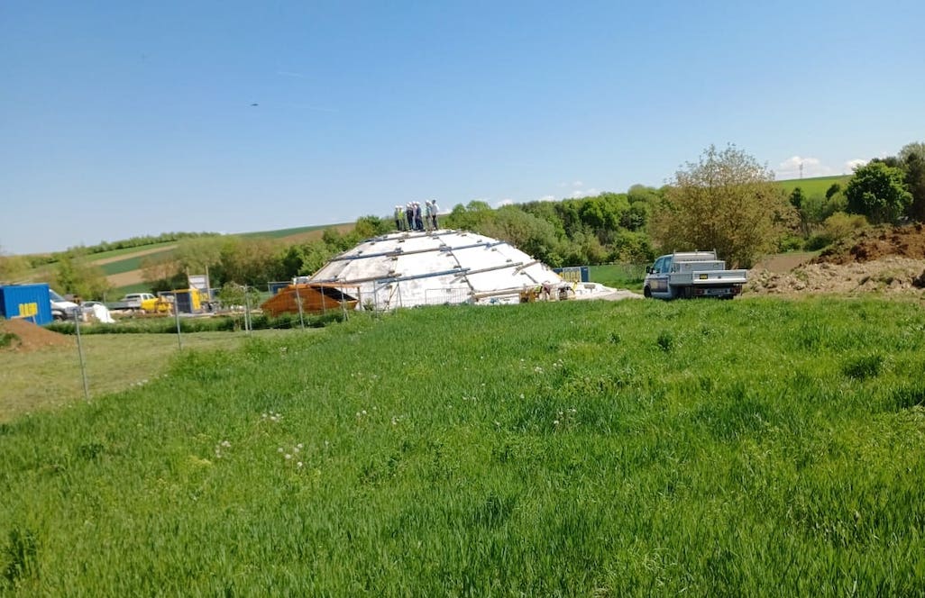 Die Betonkuppel, die erstmals im Burgenland mit der innovativen "Pneumatic-Wedge-Methode" errichtet wird, soll bis Ende des Jahres fertiggestellt sein. Gefördert wird der Bau durch das Österreichische Programm für ländliche Entwicklung 2014-2020.