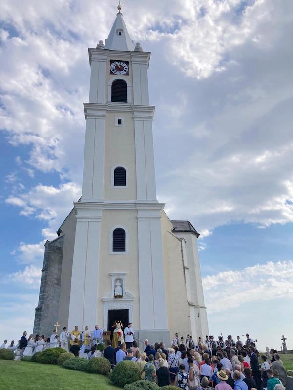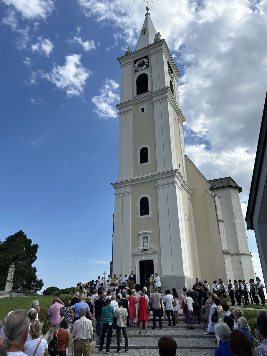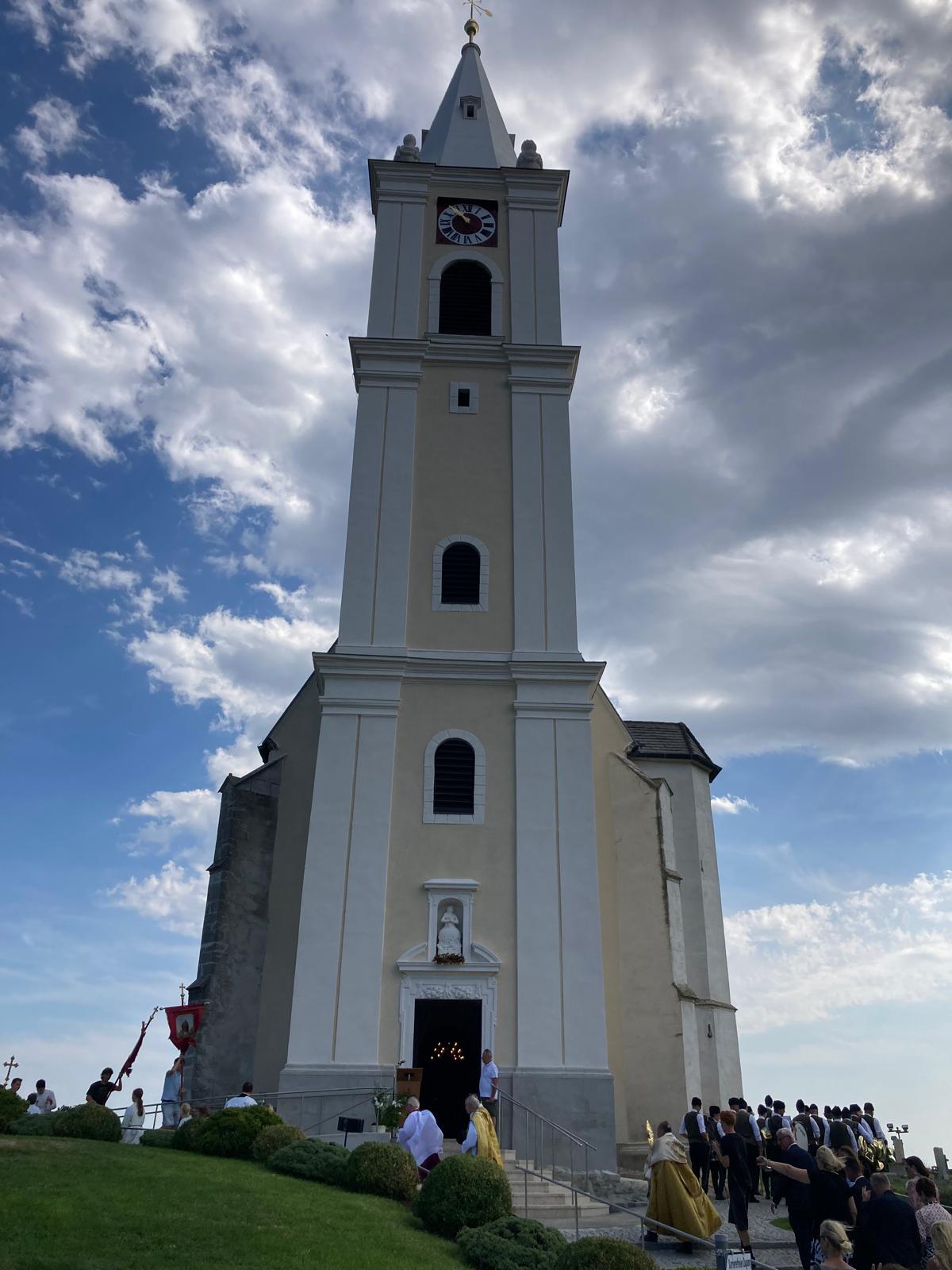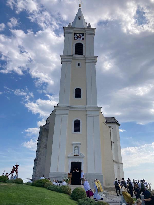Nach der Messfeier und nach der Prozession vom Oberberg zur Pfarrkirche Kleinhöflein segnete Pfarrer Alexander in Kleinhöflein den neu renovierten Kirchturm und den neu gestalteten Pfarrhofvorplatz.