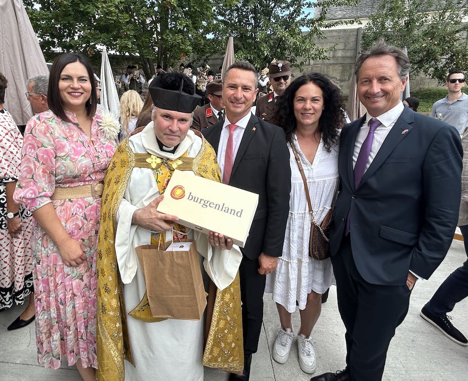 Im Bild: Landeshauptmann-Stellvertreterin Astrid Eisenkopf mit Kleinhöfleins Ortspfarrer Militärdekan Bischofsvikar Alexander M. Wessely, Landtagspräsident Robert Hergovich, Vizebürgermeisterin Charlotte Toth-Kanyak und Bundesrat Günter Kovacs. Foto: Landesmedienservice Burgenland