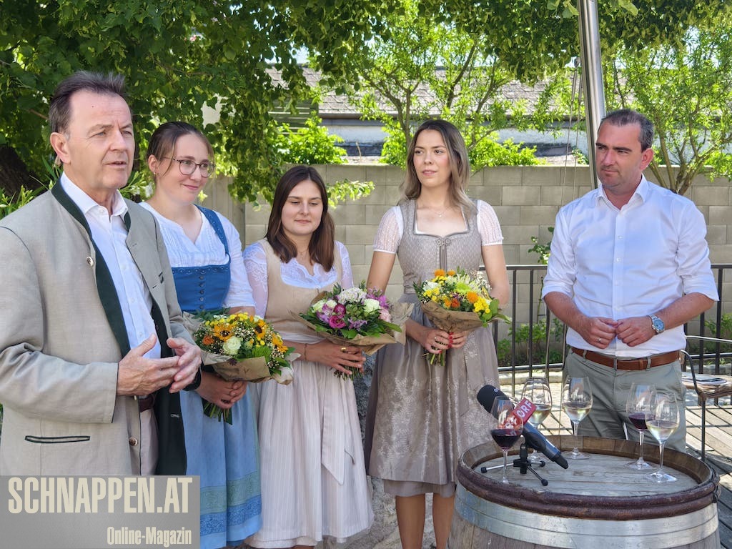 "Wir gratulieren Maria Liegenfeld zur Wahl der neuen Burgenländischen Weinkönigin. Sie wird für das kommende Jahr den burgenländischen Wein national und international repräsentieren. Außerdem bedanken wir uns bei ihrer Vorgängerin Hannah I. mit ihrer Weinprinzessin Sophie, die in ihrer Amtszeit hervorragende Arbeit geleistet haben", erklärten Wein Burgenland Obmann Herbert Oschep und LK-Präsident Nikolaus Berlakovich Anfang Juli 2025 unisono.