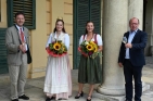 Beim Festakt in Eisenstadt trugen die Weinhoheiten die von zwei regionalen Kleidermacherinnen geschneiderten und gesponserten Krönungsdirndln.