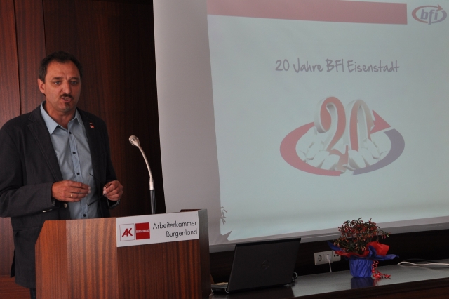 Bei der Jubliäumsfeier der Geschäftsstelle Eisenstadt betonte Sozial- und Gesundheitslandesrat Dr. Peter Rezar die Wichtigkeit, dieser Institution gerade in wirtschaftlich schwierigen Zeiten: "Wir wollen das BFI als zuverlässigen Partner der burgenländischen Landespolitik nicht missen. Es ist im Bereich der Aus- und Weiterbildung der Arbeitnehmer/innen sehr erfolgreich und im Tätigkeitsbereich von Arbeitsmarkt- und Beschäftigungspolitik seit 20 Jahren im Bezirk Eisenstadt ein stabil positiver Faktor. Wissen, Ausbildung und Qualifikation sind der Schlüssel für dauerhafte Beschäftigung."