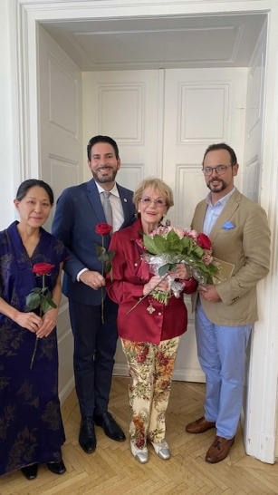 Im Bild: Bariton Miyuki Schüssler, Opernsänger Clemens Unterreiner, Opernsängerin Renate Holm, künstlerischer Leiter Michael Linsbauer.