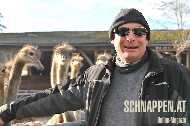 Wolfang Gärtner, der Betreiber vom Straußenland, das nicht nur Zuchttiere, Küken, Fleisch- und Straußenprodukte anbietet, sondern auch Tourismus und Führungen von Gruppen, Schulklassen und Kindergärten im Programm hat: "Wir haben über 500 Tiere und sind die Größten in Österreich. Bei uns gibt es alles aus erster Hand."