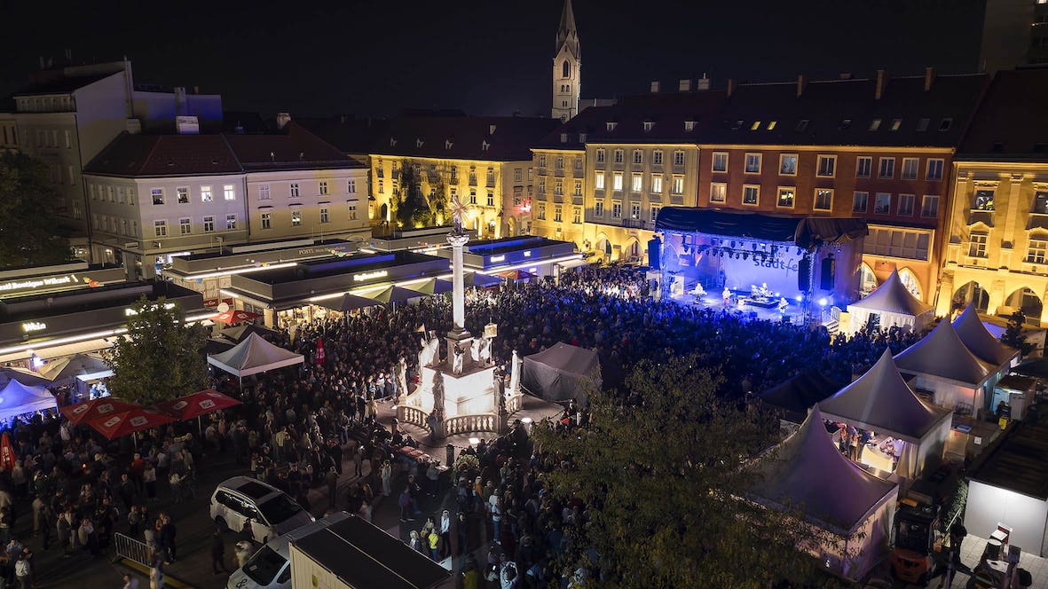 Im Bild: Das bunte Stadtfest in Wiener Neustadt aus der Vogelperspektive. Foto: (c) Stadt Wiener Neustadt/Weller