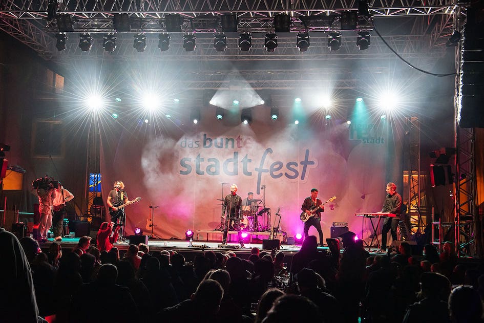 Die "Almdoodle Sisters" bildeten Samstagabend, nach einem Schlager-Showact und einer Musical-Reise mit Robert D. Marx, Julia Planl, Istvan Csiszar und Birgit Scheibenreif, mit Liedern von Helene Fischer und Andreas Gabalier den Abschluss des "Bunten Stadtfestes" 2021.