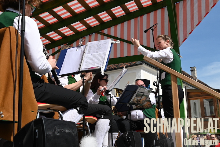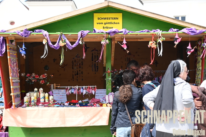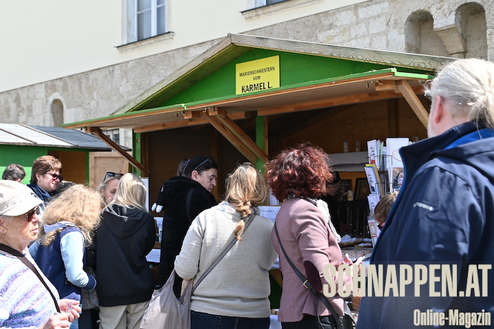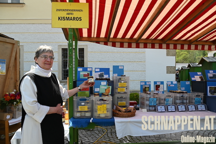 Cirka 30 Ordensgemeinschaften und Klöster aus Österreich und aus verschiedenen Ländern boten in kleinen Holzhütten ihre Produkte zum Verkauf an und am Platz vor dem Stift spielte vor den aufgestellten Heurigenbänken und -tischen die Blasmusikkapelle.