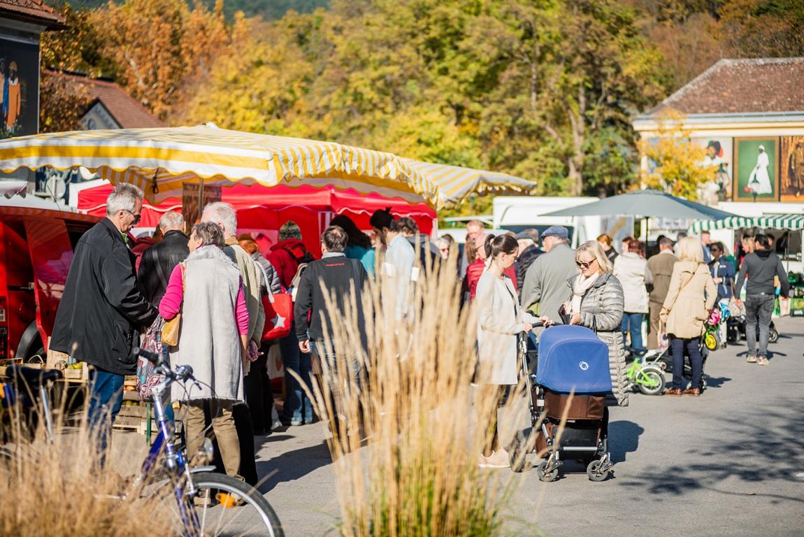 Die Stände des Genussmarktes wird regemläßig hinter dem "Grünen Markt" in Baden aufgebaut.