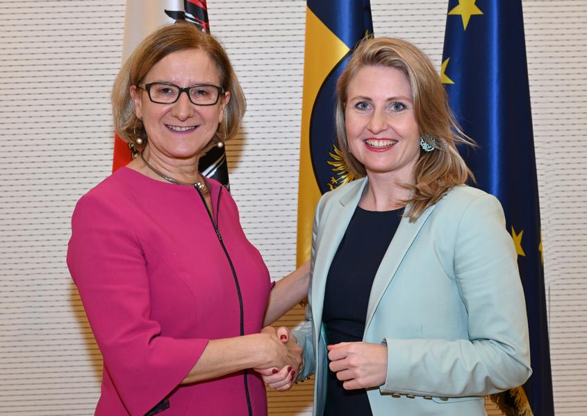 "Gegen Gewalt an Frauen" war eines der Hauptthemen, über das die Bundesministerin für Frauen und Integration Susanne Raab mit Landeshauptfrau Johanna Mikl-Leitner beim Arbeitsgespräch Mitte Februar 2020 im Palais Niederösterreich in Wien diskutierte. "Gewalt an Frauen macht nicht an Landesgrenzen Halt und braucht gemeinsame Lösungen", startete Niederösterreich, nachdem das Bundesland 2019 mit 14 Frauenmorden konfrontiert war, einige Initiativen. BM Susanne Raab möchte nun einen Schwerpunkt auf den Gewaltschutz setzen und betonte, dass es beim Thema Gewalt gegen Frauen "null Toleranz" gäbe. Für jedes bedrohte Mädchen, so Raab, solle es einen Zufluchtsort geben, an dem es Schutz findet. Mehr über