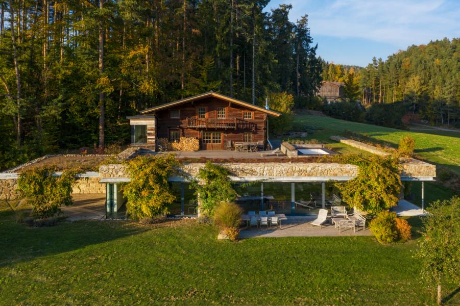 Getrennt aber doch nahe beieinander war die Vorgabe, die Untergrabung des alten Holzhauses die tollkühne Entwurfsidee der baulichen Erweiterung. Das Ergebnis wurde ein Bauwerk als Teil der Landschaft. Der klassischen Architektur der Bauernhäuser "unten Stein, oben Holz" folgend, wurde der Unterbau aus statischen Gründen in Stahlbeton errichtet und mit Naturstein verkleidet.