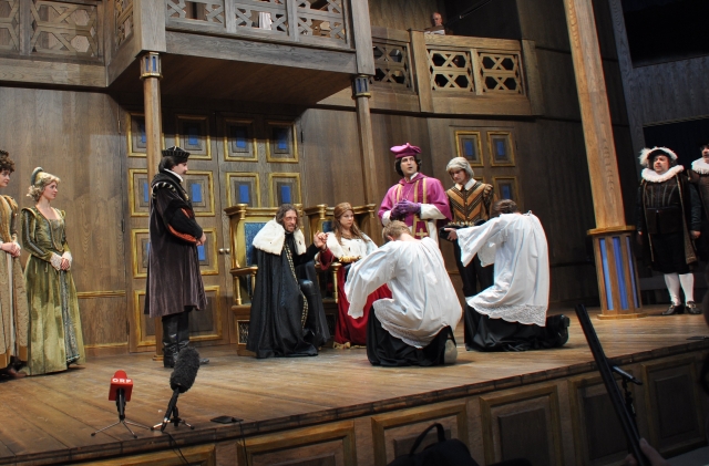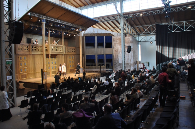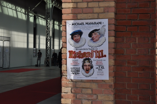Agenturchef Georg Hoanzl und Schauspieler Michael Niavarani führten als Produzenten von "Richard III." die Besucher stolz in den neu entstandenen Theaterraum - in das "Globe-Wien" in die Marx-Halle. Das Theater wirkt besonders durch die Holztäfelungen an der Bühne und an den seitlichen Balkon-Logen und ist mit bequem-gepolsterten Stühlen und weichem Teppichboden ausgestattet.