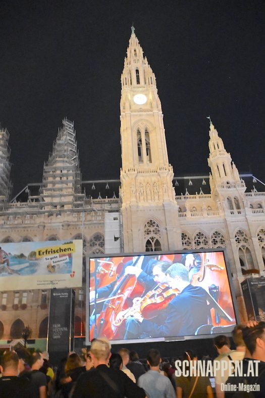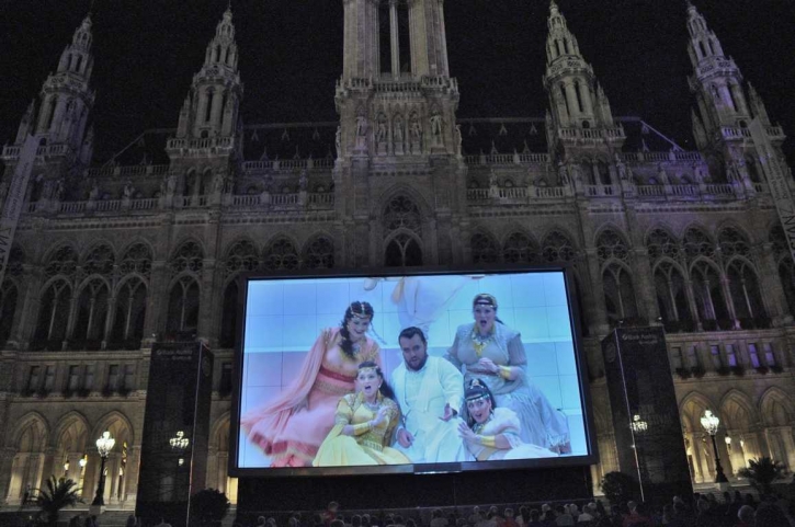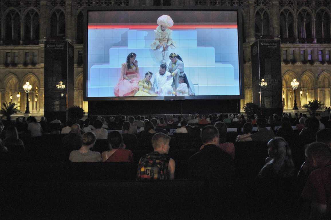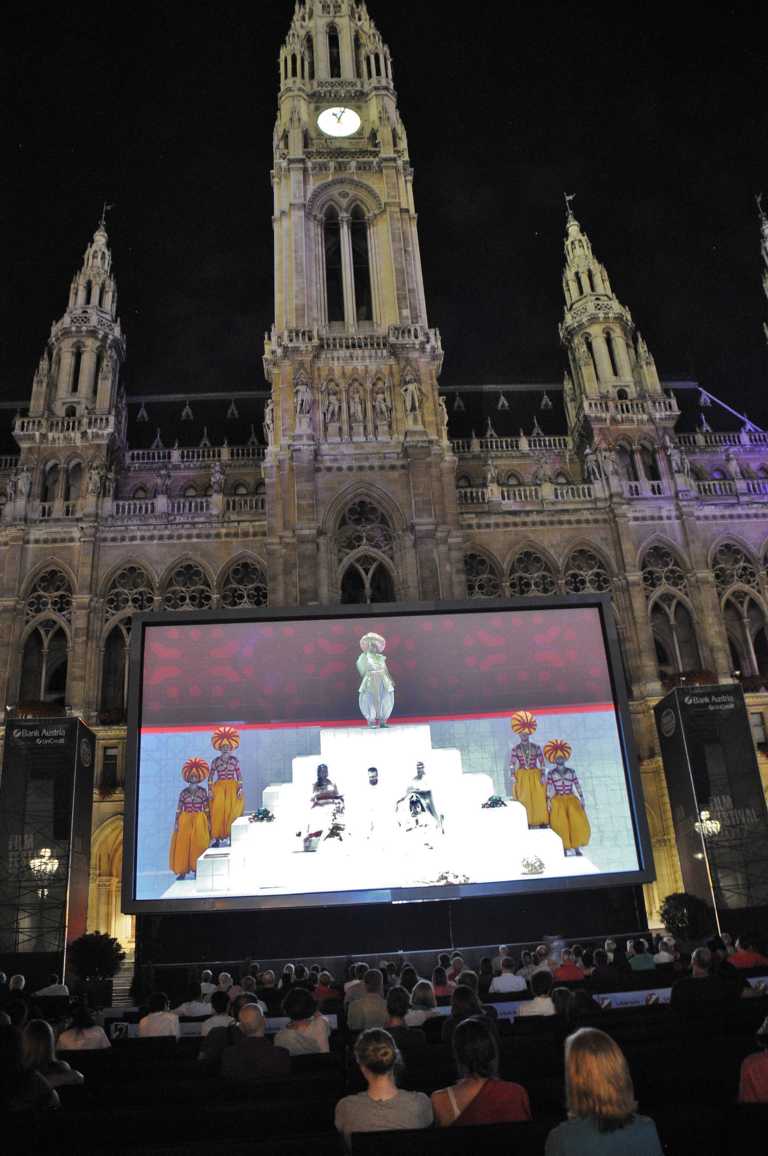An insgesamt 65 Veranstaltungstagen wurden auf der riesigen Leinwand vor dem Wiener Rathaus beim Filmfestival Filme mit einem Mix aus Pop, Rock, Jazz, Klassik, Oper, Musical und Weltmusik gezeigt.