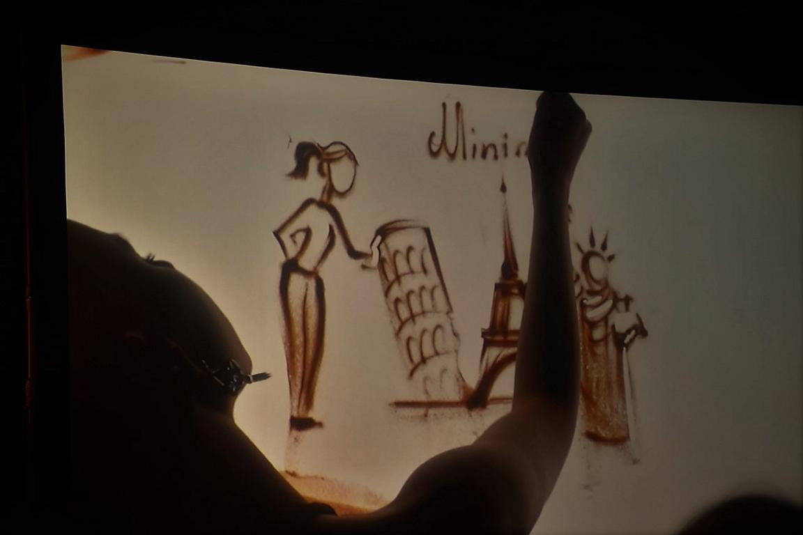Die Sandkünstlerin Irina Titova lässt durch ihre Hände feinen Sand auf eine von unten beleuchtete Platte rieseln und malt mit ihren Fingern und einer Kunstfertigkeit flink und exakt Bilder in den Sand. Begleitet von passender Musik können die Zuseher über eine Videowall das Entstehen der Werke live mitverfolgen. Irina Titova hält für wenige Sekunden die "Magie des Augenblickes" im Sand fest, wischt das Bild wieder weg und fängt kurz darauf den nächsten einzigartigen Moment ein.