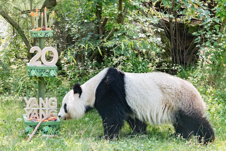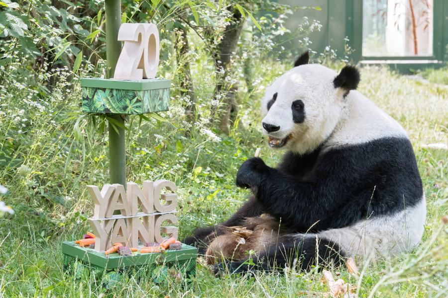 Das Panda Weibchen Yang Yang (bedeutet Sonnenschein), das im Jahr 2000 geboren wurde und seit 2003 im Tiergarten Schönbrunn lebt, feierte am 10. August 2020 mit einer "Geburtstagtorte" mit Bambussprossen, Karotten und Roten Rüben ihren 20. Geburtstag. Tierpflegerin Renate Haider: "Wir kennen Yang Yang nach der langen Zeit natürlich schon sehr gut und wissen, was sie gerne mag. Sie ist sehr neugierig und hat Freude daran, Leckereien zwischen den schön verzierten Paketen herauszusuchen."