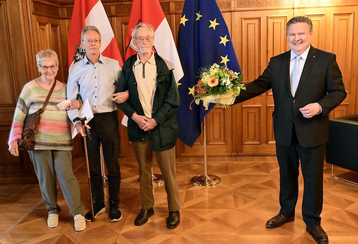 "Ernst Fettner hat eine sehr schmerzhafte, aber zum Teil auch sehr erfreuliche Biographie. Die schmerzhafte liegt in unserer furchtbaren Geschichte, dass das Nazi-Regime seine Familie verfolgt hat. Er hat seinen Vater und zwei seiner Geschwister verloren, musste mit 17 Jahren nach England flüchten und ist schließlich nach Schottland gekommen. Von hier aus wollte er mitwirken, seine frühere Heimat zu befreien", so Bürgermeister Michael Ludwig, der Anfang Juni dem Jubilar im Wiener Rathaus zum 100. Geburtstag gratulierte.