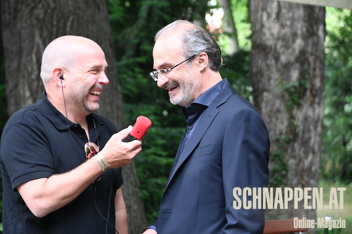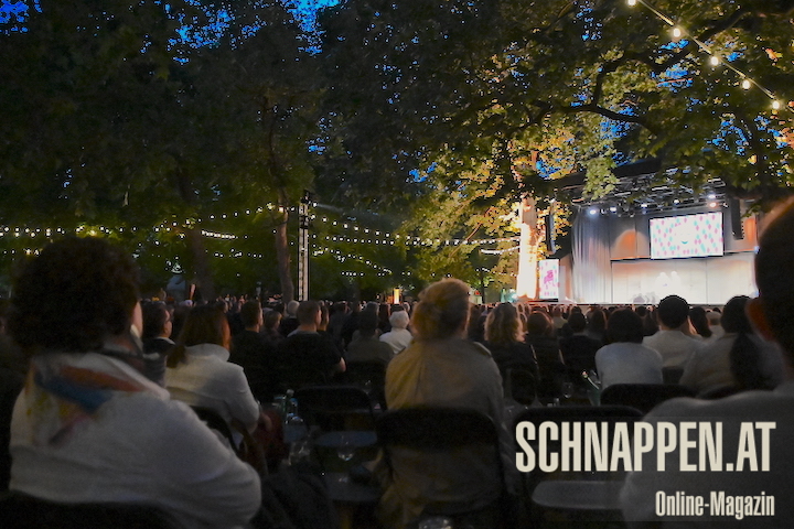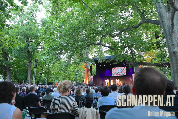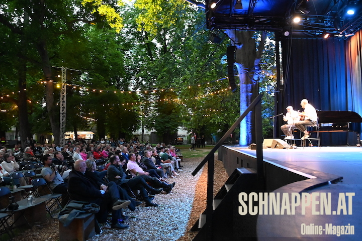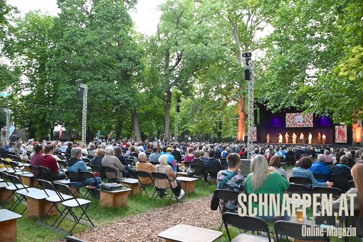 Einen wunderschönen, lauen Sommerabend wählten Michael Niavarani und Georg Hoanzl für die Eröffnung von "Theater im Park" am 19. Mai 2025 in Wien (Österreich).