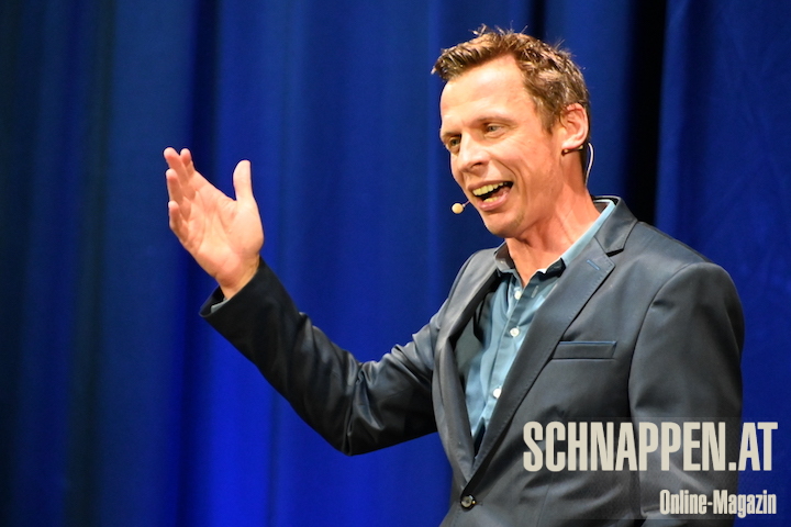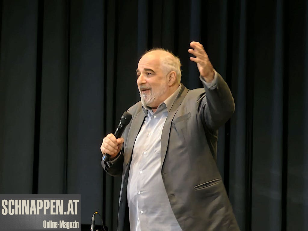 Michael Niavarani, Georg Hoanzl und Moderatorin Sigrid Hauser begrüßten am Eröffnungstag das Publikum, bevor Michael Niavarani Ausschnitte aus seinem neuen Soloprogramm präsentierte.