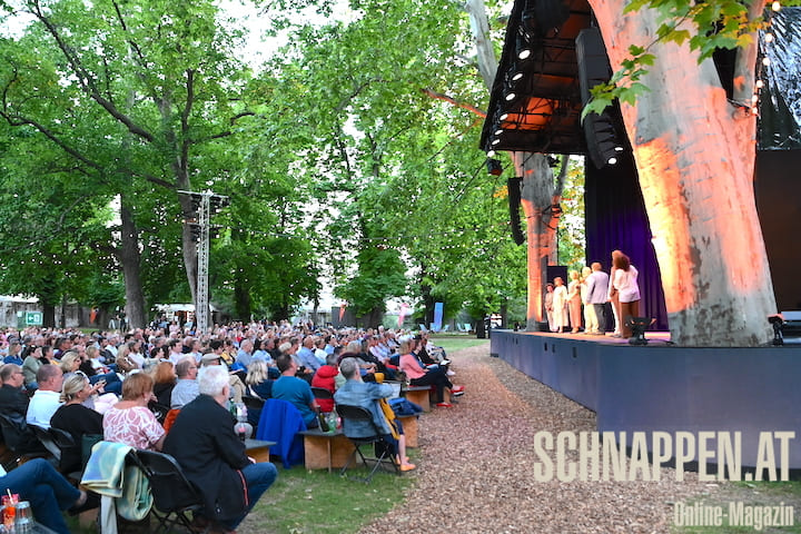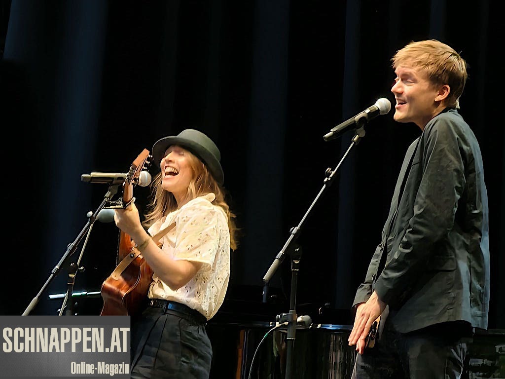 Cornelia Horak sang Lieder aus dem Walzerprogramm der Solisten der Wiener Philharmoniker, Anna Mabo leistete mit poetischen Songs einen Vorgeschmack auf das Festival und das Duo Wiener Blond lieferte einen charmanten Musikstreifzug zwischen Wienerlied, Hip Hop und Liedermacher-Pop.