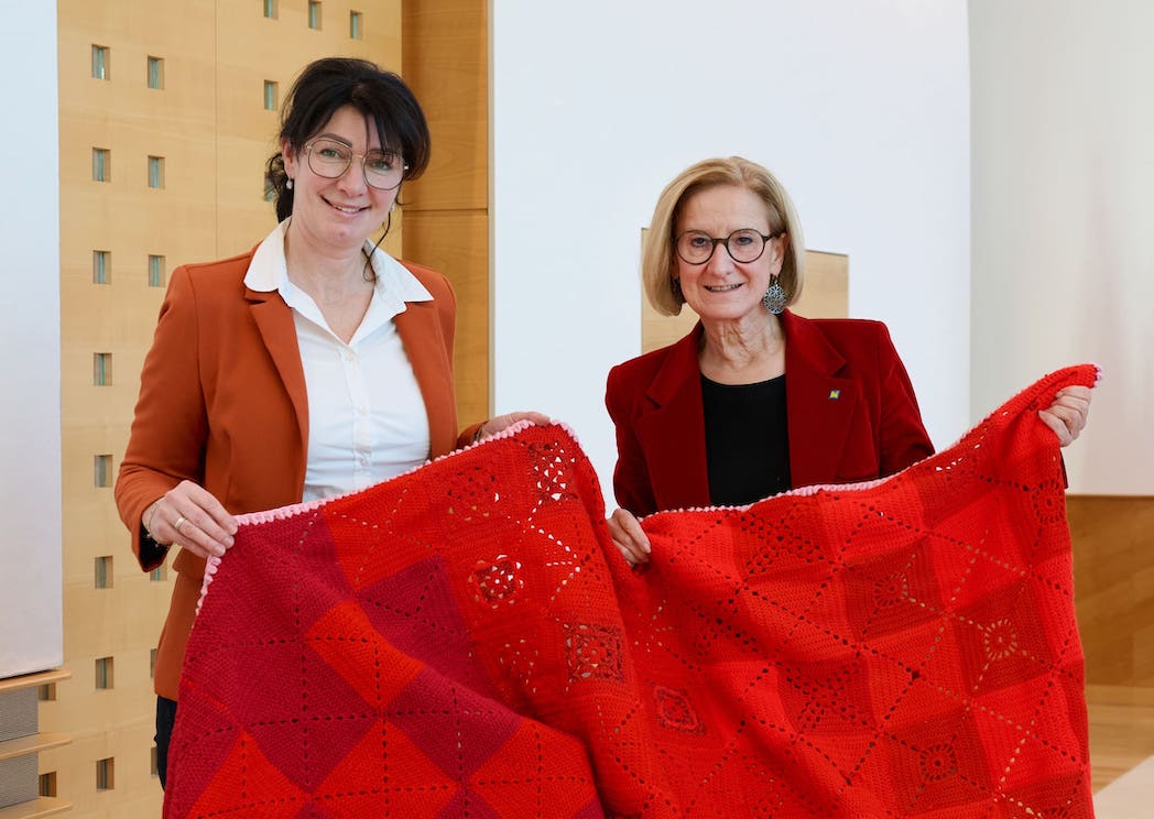 Der rote Häkelteppich, der nun im Landhaus übergeben wurde, symbolisiert die Gesamtheit dieses Engagements – und zugleich den nachhaltigen Charakter der Initiative.