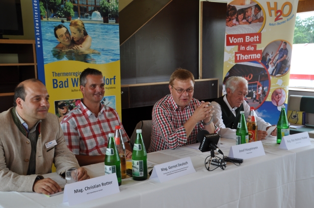 Dem fügt der Geschäftsführer der Heil-Therme Bad Waltersdorf und Tourismusobmann der 2-Thermenregion, Mag. Gernot Deutsch, noch ergänzend hinzu, dass durch den Tourismus in der Region ständige 1.000 Arbeitsplätze geschaffen worden seien: " Wodurch wir uns letztlich zur nächtigungsstärksten Region Österreichs in Hinblick auf österreichische Gäste entwickelt haben. Für die gesamte Region gilt daher für 2013 eine Nächtigungszahl von 534.000 Gästen mit einem Österreicheranteil wie schon zuvor erwähnt, wobei man insgesamt auf 78 Nächtigungsbetriebe mit 2.817 Betten verweisen kann."