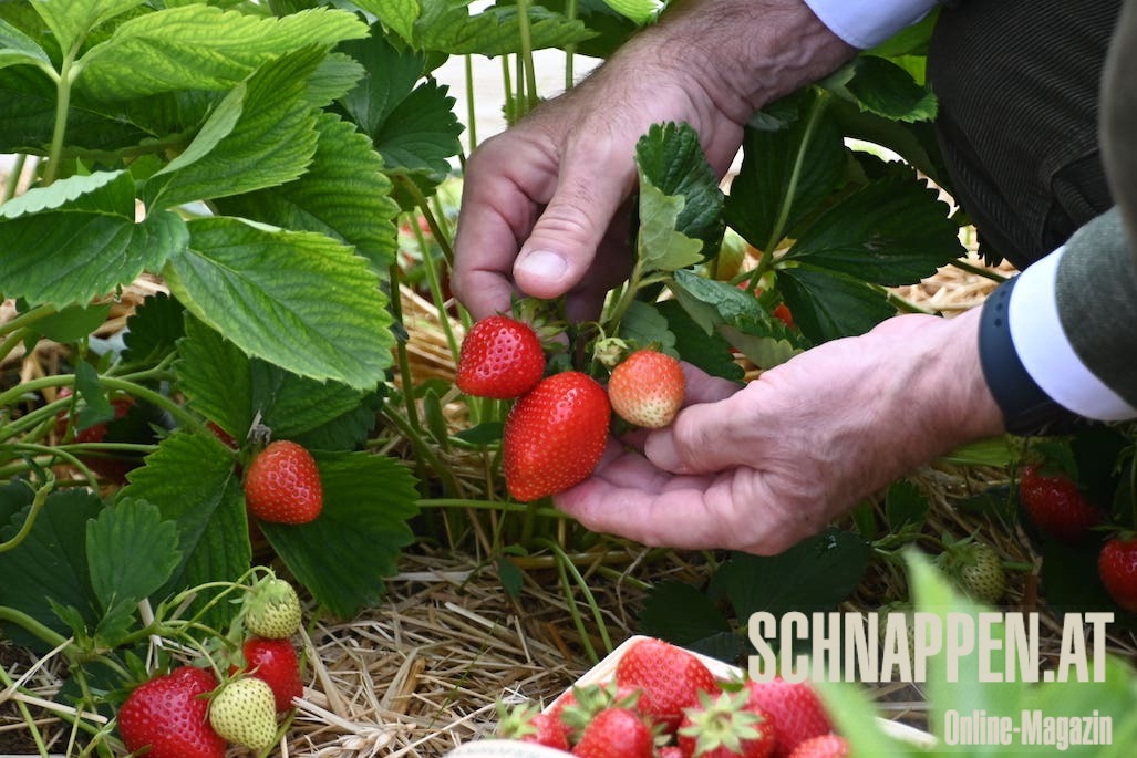 "Durch den trockenen Winter und die gemäßigte Witterung im Frühjahr konnten sich die Erdbeeren optimal entwickeln. Wenn die Witterung so bleibt, haben wir Erdbeeren bis Anfang Juli", erklärte Christoph Ramhofer, der leidenschaftliche Freiland-Erdbeerbauer und Vizebürgermeister von Wiesen.
