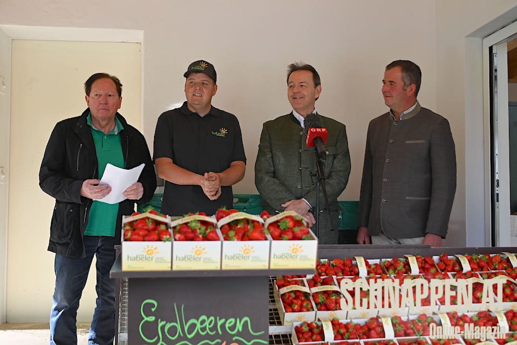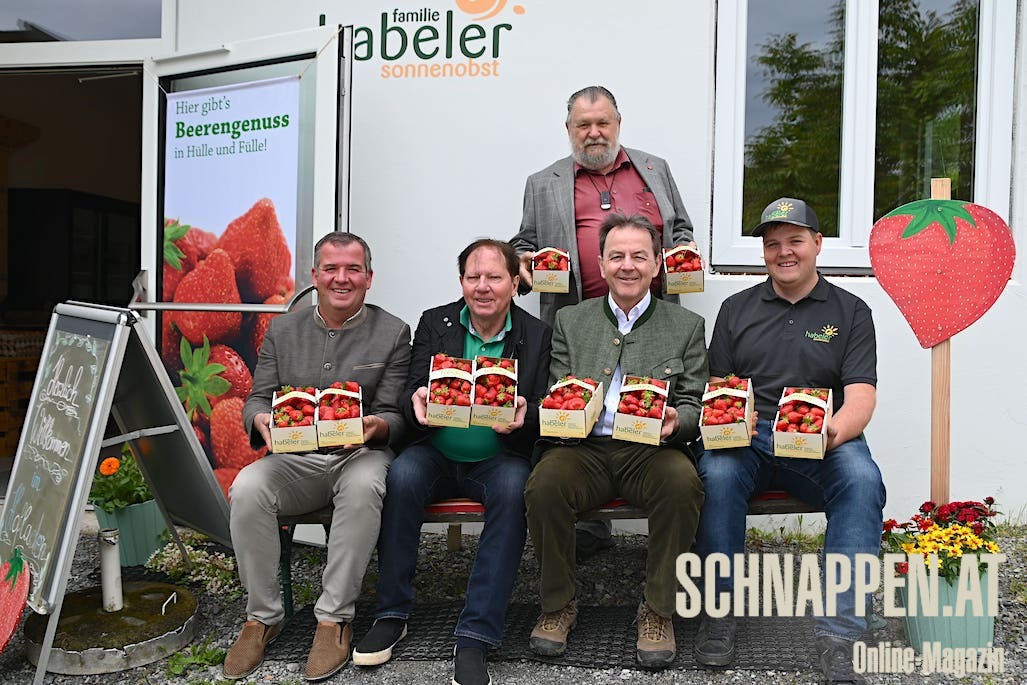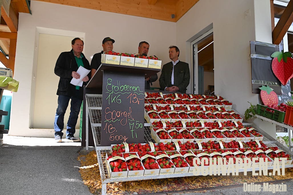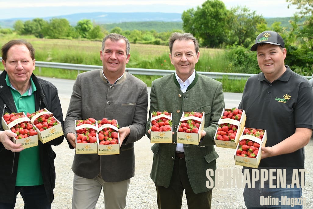 Am 8. Mai 2024 präsentierte Erdbeerbauer Christoph Ramhofer gemeinsam mit dem Präsidenten der Burgenländischen Landwirtschaftskammer Nikolaus Berlakovich, dem Wiesener Bürgermeister Matthias Weghofer und den Erdbeer-Hoheiten aus Wiesen die köstlichen roten Früchten beim Verkaufsstand der Familie Ramhofer in der Wiesener Bahnstraße.